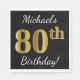 Serviette En Papier Noir, Faux Or 80e anniversaire + Nom personnalisé