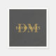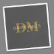 Serviette En Papier Nom et monogramme élégant | Or et gris foncé