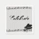 Serviettes avec l'image de notes musicales et le mot, Celebrate, contre un arrière - plan gris et noir.
