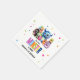 Monster amusant et coloré thème 1er anniversaire de fête Napkin's. Notre petit monstre est UN ! Le design comprend un groupe de mignons monstres colorés d'aquarelle, des confettis d'étoiles et des textes en arc-en-ciel gras.