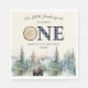 C'est un bleu Notre petit bûcheron est en train de tourner une forêt forestière Ours 1er anniversaire Papier de fête Napkins! bois ours forestier animaux animaux animaux bisons verts imprimer hiver novembre décembre arbres froids bois gris grizzly ours bleu brun