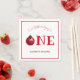 Des serviettes pour votre première fête d'anniversaire sur le thème de la coccinelle. Il inclut les mots "Notre petite coccinelle est une" avec le mot "un" commencé avec une illustration de coccinelle. Les serviettes comprennent également un nom personnalisable.