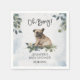 Cette jolie aquarelle présente un mignon petit chiot en Carlin assis sur un lit de fleurs sauvages, de verdure et de feuillage. Customisez avec votre nom et votre date pour faire de votre Baby shower la journée parfaite.