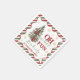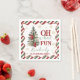 A festive holiday-themed birthday napkin design featuring bold red and green candy cane stripes, gold snowflakes, and elegant Christmas greenery with red bows. The cheerful “Oh What Fun” headline adds a playful seasonal touch, making it perfect for winter or Christmas birthday celebrations. Ideal for girls’ first birthdays and coordinating with matching party décor.