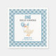 One Silly Goose 1st Birthday party napkins to celebrate your little goose's 1st birthday. Design features blue gingham pattern, and a silly cute goose holding birthday balloons with the number 1 on one of them and the goose is wearing a birthday party hat.