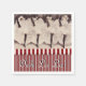 Forfait de 50 serviettes de cocktail en papier blanc avec une belle image vintage de quatre danseurs français cancan tourbillonnant des jupons blancs et portant des casquettes à plumes à large bord au-dessus d'un auvent bordeaux et rose sur bandes bordeaux et gris. Voir la serviette et les dessous de verre en tissu assortis. Voir toute la collection Cancan Napkin dans le FOOD/BEV | Section Linge.