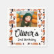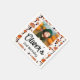 Orange Champignons Automne Photo Anniversaire Serviettes de fête. Un joli motif de champignons orange et noir aux couleurs de l'automne, le nom et la photo d'un enfant personnalisé. Un joli décor de fête d'Halloween ou d'automne.