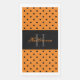 Monogramme personnalisé pois orange et noir Halloween Papier Serviettes d'hôtes. Faites vos propres serviettes de fête personnalisées. Ajoutez votre propre texte et votre propre couleur arrière - plan. Idéal pour mariage, Anniversaire, baby shower, dîner, barbecue et plus encore. Motif polkadotted avec initiales de nom. Serviettes pliées étroites jetables pour sécher les mains dans la salle de poudre et plus.