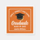 Cette serviette en papier moderne orange et blanc pour la fête de remise des diplômes comporte une typographie classe de votre nom de lycée ou de collège pour la classe de 2025. Customisez avec votre année de remise de diplômes sous l'écriture chic manuscrite et le casquette noir gris pour une décoration supérieure personnalisée.