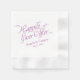 Vous pouvez personnaliser le nom de la mariée et du marié et la date mariage sur ces script de typographie moderne violet orchidée et blanc, heureux jamais après des serviettes personnalisées en papier mariage marié marié. Des serviettes mariages pour un mariage de printemps, d'été ou d'hiver.