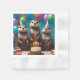 Voici Trois Loutres Avec Casquettes D'Anniversaire, Gâteaux Et Ballons Qui Vous Attendent Pour Faire La Fête.