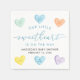 Complete a sweetheart-themed baby shower table setting with this charming candy heart baby shower napkin designed for celebrating a baby boy. Colorful conversation heart illustrations surround the layout, featuring playful phrases like “It’s a Boy!” alongside soft blue script reading “Our Little Sweetheart Is on the Way.” Customers can personalize the napkin with the guest of honor’s name and baby shower date, displayed neatly below the main wording. Sweet and Valentine-inspired, this napkin coordinates beautifully with sweetheart-themed décor for February baby showers welcoming a baby boy.