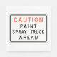 Un panneau qui dit prudence Peinture pulvérisateur camion devant. Ce design semble vraiment efficace sur ces serviettes en papier