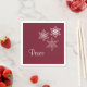 Un design de vacances minimaliste élégant et élégant, avec trois flocons de neige blancs et le mot Paix sur un arrière - plan bordeaux. Le texte peut être customisé pour convenir à votre goût ou à votre occasion. #noël #napkin
