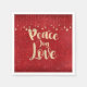 Panneau or Peace Joy and Love avec étoiles et flocons de neige sur un arrière - plan rouge.