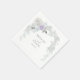 L'élégante arche rose bleue, lilas et blanche entourée de feuillage irisé nacré améliore le nom de la mariée et du marié et la date mariage sur ces serviettes en papier dans une variété de tailles et de styles. Choisissez la taille du cocktail, du déjeuner ou du dîner et le style inventé ou non. Il fait partie d'une collection de papeterie mariage avec accessoires mariages assortis. Conception créée pour BarefootBride™ © par WhimsicalArtwork™