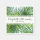 Une élégante serviette de mariage au design tendance de palmiers tropicaux qui comprend un espace modèle pour vos noms dans un magnifique script moderne en vert et la date.
