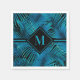 Serviette En Papier Palmes noires Turquoise Monogramme