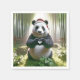 Un panda mignon portant un chapeau de Père Noël forme un coeur avec ses pattes assis dans une forêt luxuriante de bambou
