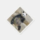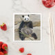 Panda géant (Ailuropoda melanoleuca) vue de devant et manger du bambou assis sur des rochers