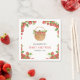 Élégantes serviettes en papier baby shower avec de belles fraises et une typographie moderne.