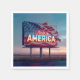 Un grand panneau d'affichage est installé dans un champ du Midwest, affichant les mots "Made in America" sur fond du drapeau américain et du ciel du lever du soleil