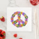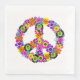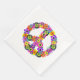 Cette serviette en papier a un signe de paix floral dans les tons rose, turquoise, jaune, orange, violet, vert et noir.