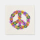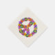 Cette serviette en papier a un signe de paix floral dans les tons rose, turquoise, jaune, orange, violet, vert et noir.