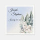 A serene winter wildlife scene featuring two majestic white wolves surrounded by snow-covered pine trees, soft falling snow, evergreen foliage, and frosty winter textures. This tranquil Arctic forest design blends watercolor artistry with nature-inspired details, perfect for winter birthdays and winter parties.