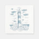 Papier à thème nautique Napkin. Phare dessiné à la main en toile de jouy.