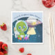 Personnalisez cette jolie serviette en papier pour la maman et papa-à-être à temps pour leur prochain baby shower ! L'adorable bébé alien joue avec des roquettes de jouets assis devant leur vaisseau spatial orné de fleurs. Un biberon est assis dans l'arrière - plan.