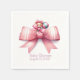 La serviette est munie d'un grand arc d'aquarelle à rayures roses, complété par un adorable bébé ours qui accroche un hochet et enfilent des arcs roses. C'est un design de baby shower charmant, personnalisable à votre goût.