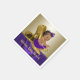 Serviettes en papier baby shower violet avec petite fille afro-américaine mignonne sur une paire de jolies chaussures à talon haute en or et élégant arrière - plan violet et or. Ces adorables serviettes en baby shower violet et or sont facilement customisées pour votre événement en ajoutant simplement le texte de votre choix.