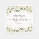 Serviettes en papier Baby shower de Roses Blanches vertes. Ce Baby shower Invitation élégant et élégant présente de magnifiques aquarelles peintes à la main de verdure Roses blanches. Trouvez les articles correspondants dans la collection de roses blanches vertes.