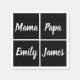 Drôle motif carré noir et blanc avec des mots. Ajoutez les noms des membres de votre famille ou des mots drôles. Fonctionne pour les noms courts.
