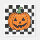 Une serviette en papier avec un visage citrouille orange. Plaques et tasses assorties disponibles. Vous pouvez supprimer le texte ou le modifier à votre propre aide de l'outil de conception.