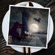 Des serviettes en papier Halloween décorées d'un paysage nocturne avec un chat noir, une araignée et une chauve-souris à pleine lune. Dans l'arbre sont de subtiles lumières de fête.