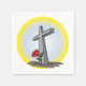 Cette conception est une croix grave. La croix marque une tombe et il y a une fleur rouge près de la croix. Cette grave croix design semble très bien sur ce Papier Napkins
