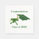 Des serviettes en papier élégantes pour la fête de graduation, avec des graphiques d'un mortier vert et or et diplôme, au milieu. Personnalisez le texte vert pour votre fête de remise de diplômes. Plaques en papier, bannière et invitations sont disponibles.