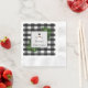 Ajoutez une touche festive à votre étalage de vacances avec un ensemble de serviettes en papier de Buffalo Snowman. Le design de Napkin comprend une boîte ornée de branches de pin et de charmant bonhomme de neige contre un arrière - plan en plaid de buffle noir et blanc. Autres cadeaux et objets de vacances disponibles avec ce design aussi.