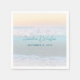 Serviettes en papier d'océan pour personnaliser pour une réception de mariage. Ondes océaniques et arrière - plan de ciel doré avec les noms du couple et la date du mariage.