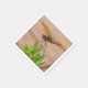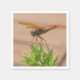 Cette serviette comporte une libellule perchée sur des bourgeons de fleurs.
