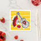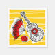 Un design de style du milieu du siècle avec une touche rétro avec des souvenirs de vacances espagnoles ; une guitare en fer forgé, un ventilateur en dentelle et une rose rouge sur un arrière - plan rayé doré. Un design personnalisable pour personnaliser avec votre propre texte, images et idées. Une image d'art numérique originale créée par Jess Perry sur QuirkyChic Retro