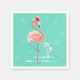 Design inspiré du milieu du siècle avec un flamant rose festif portant un chapeau de Père Noël rouge, des étoiles et des palmiers décorés de billes dressées contre un arrière - plan d'aqua. Un design personnalisable pour personnaliser avec votre propre texte, images et idées. Une image d'art numérique originale créée par Quirky Chic.