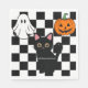 Une serviette en papier avec un fantôme, un chat citrouille et noir dessus. Plaques et tasses assorties disponibles. Vous modifiez le texte à votre propre place ou le supprimez complètement.