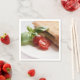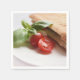 Serviette en papier avec alimentation italienne saine composée d'un sandwich Caprese panini et d'une tomate, feuilles de basilic vert et fromage mozzarella.