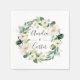Papier mariage Napkin avec une couronne de fleurs blanches aquarelles avec feuillage vert. Pour une personnalisation plus avancée de cette conception, veuillez cliquer sur le bouton "Personnaliser". Des articles correspondants sont également disponibles.