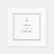 Serviettes en papier mariage à ancre nautique classique avec nom de mariée et de mariée. Blanc avec double bordure bleu marine et illustration d'ancrage au centre supérieur, texte bloc en bleu marine.