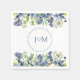 Blueberry floral bleu marine à l'aquarelle avec des serviettes en papier mariage de mariée et de mariée monogramme.