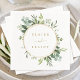 Cette serviette en papier mariage est ornée d'une aquarelle peinte de verdure d'eucalyptus, de feuilles verts et d'un cadre circulaire doré. Pour une personnalisation plus avancée de cette conception, cliquez sur le lien "Customiser plus loin". Des articles correspondants sont également disponibles.